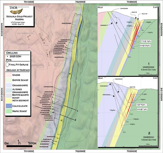 Thor is pleased to announce further positive results from an advanced diamond drilling program at the Segilola Gold Mine (“Segilola”), which is targeting potential mineralisation beneath the current open pit with the objective of extending the Segilola mine life.