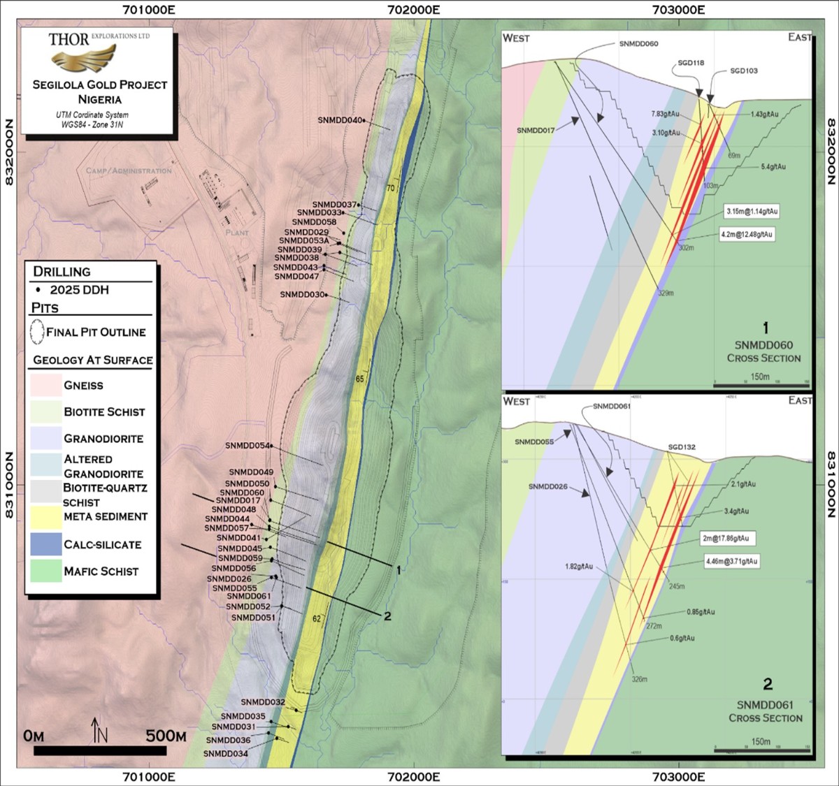 Thor is pleased to announce further positive results from an advanced diamond drilling program at the Segilola Gold Mine (“Segilola”), which is targeting potential mineralisation beneath the current open pit with the objective of extending the Segilola mine life.